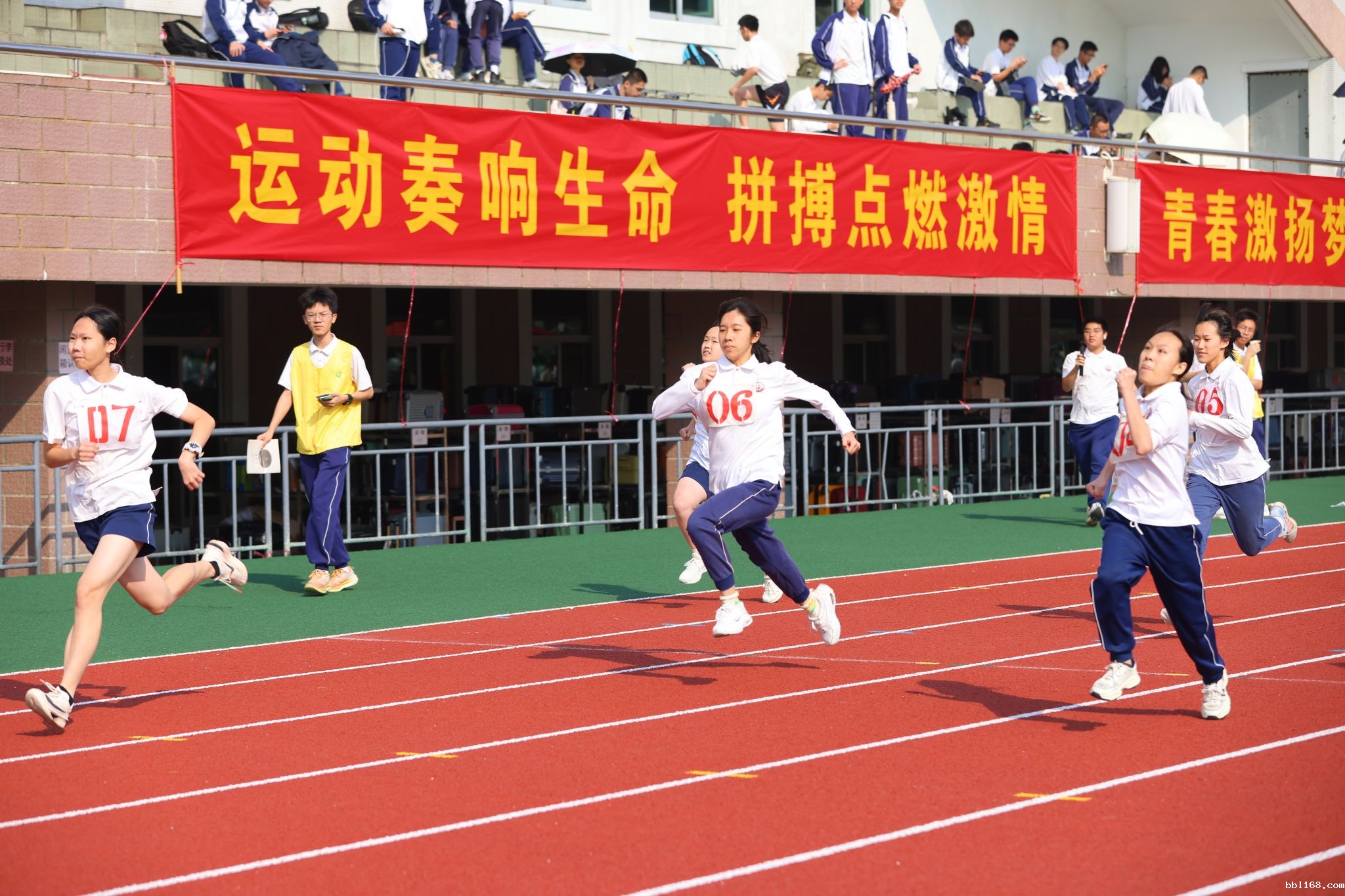 跑道上,每一次疾驰都是对速度的挑战,每一次超越都是对自我界限的打破。在这里,汗水成为了勋章,每一滴都记录着同学们的努力与坚持。