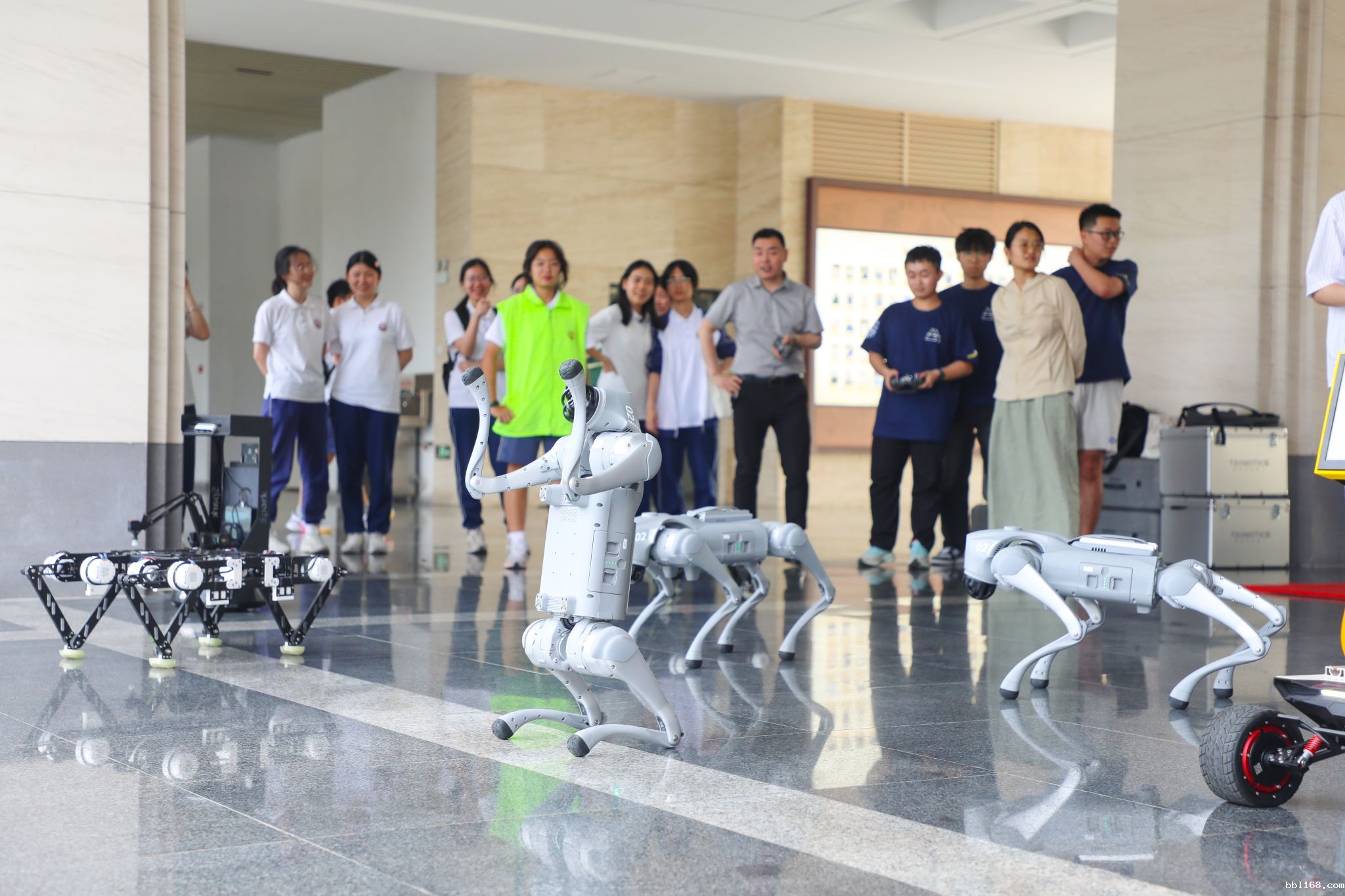 在科技节游园现场,由深圳技术大学为学校带来的机器人表演现场成为焦点。宇树机器狗灵活翻滚、教育机器人与同学们精准交互、集群机器人协同起舞……整个表演过程中,机器人们行云流水般的连贯动作与智能化的交互表现,引得围观师生连连发出惊叹,不仅展现了人工智能领域的最新成果,更点燃了同学们对机器人技术的无限向往。