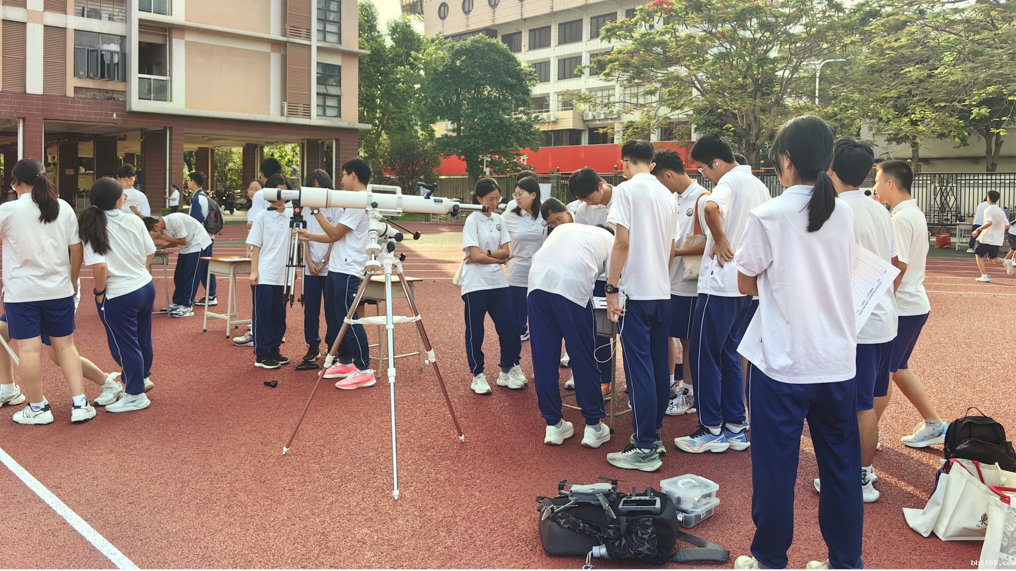 地理科组和学校比邻天文社联合举办天文观测比赛活动,来自全校各年级的50余名天文爱好者齐聚一堂,用望远镜遥望星空,以知识竞答碰撞思维火花。