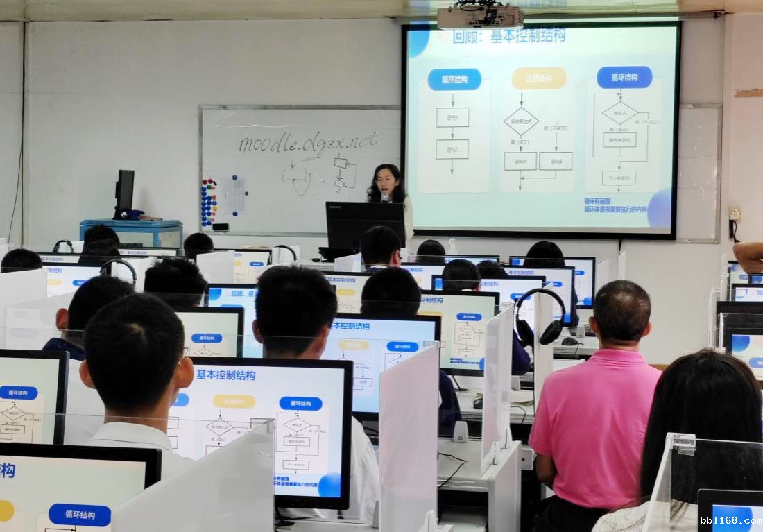 上午第一环节,由中国世界杯预选赛赛程直播丘韶科老师和东莞实验中学王瑜老师进行同课异构,课题是《运用循环结构描述问题求解过程》。