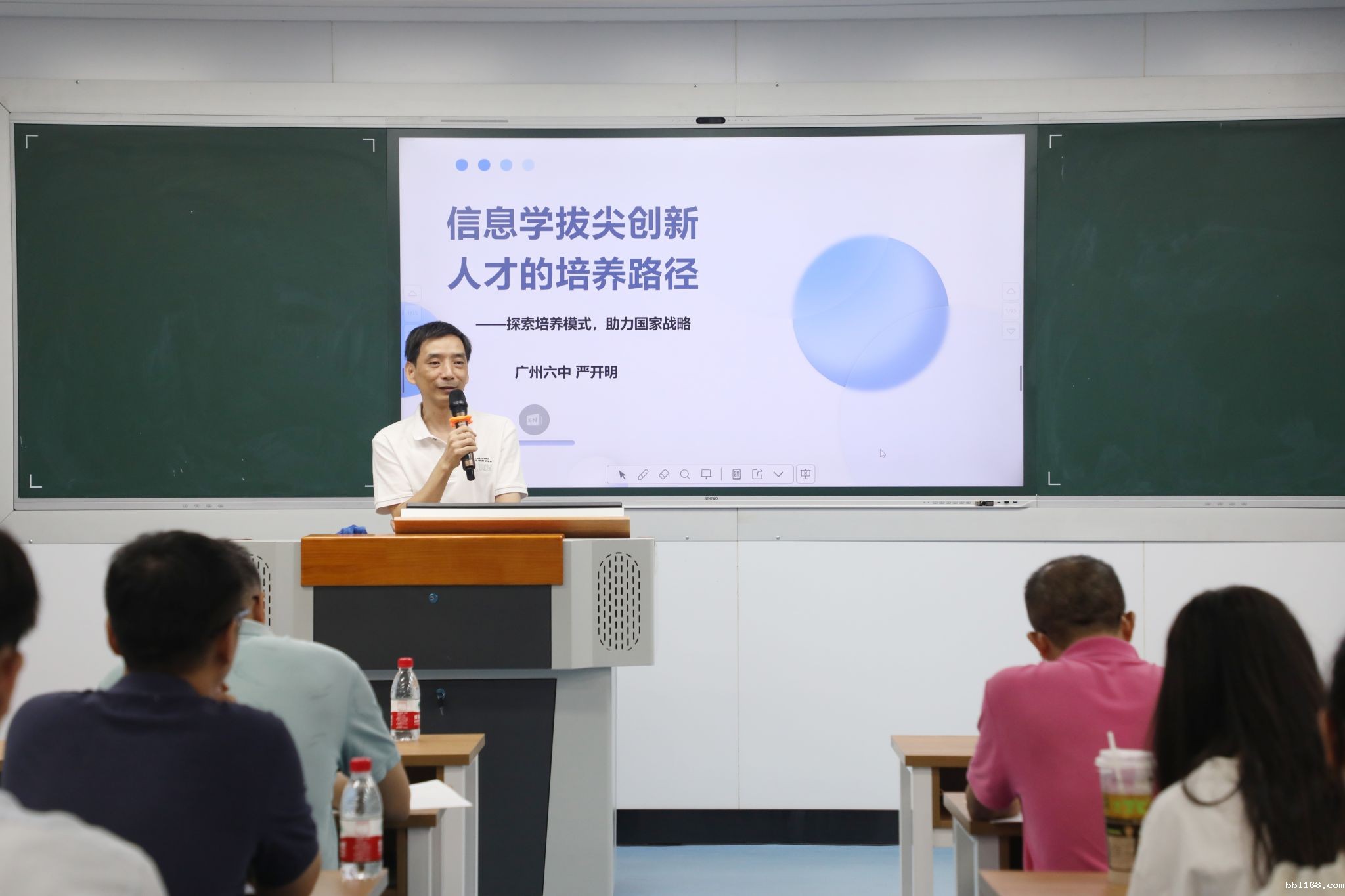 下午的教研活动主要围绕信息学科拔尖创新人才培养为主题,广州六中严开明老师以《信息学拔尖创新人才的培养路径》为题为大家带来了一场讲座。严老师旨在探讨如何通过信息学竞赛培养具有创新思维和技术能力的人才。他首先概述了信息学竞赛的定义、重要性以及其在培养学生计算机编程、算法设计和问题解决能力方面的目标。严老师通过分享自己28年的实践经验,展示了广州六中在信息学竞赛中取得的显著成绩。他强调了信息学竞赛在培养学生逻辑思维、团队合作精神和学科兴趣方面的作用,并提出了培养拔尖创新人才的策略,包括科学选拔机制、跨年级梯队搭建、个性化学习策略制定等。此外,严老师讨论了信息学竞赛对创新思维的影响,包括计算思维、批判性思维和问题解决能力的培养,以及情感态度价值观的塑造。最后,严老师对未来信息技术和人工智能技术在OI人才培养中的应用提出了展望,并强调了加强竞赛培训体系建设、提高师资水平和强化导师指导作用的重要性。