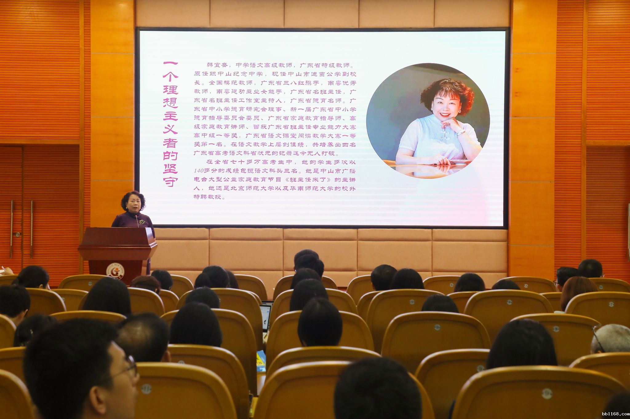 会议第一项议程是专家讲座。学校邀请到省特级教师、南粤优秀教师、省名班主任工作室主持人、原任职中山纪念中学、现任中山市迪茵公学副校长韩宜奋来校与班主任们分享带班经验。