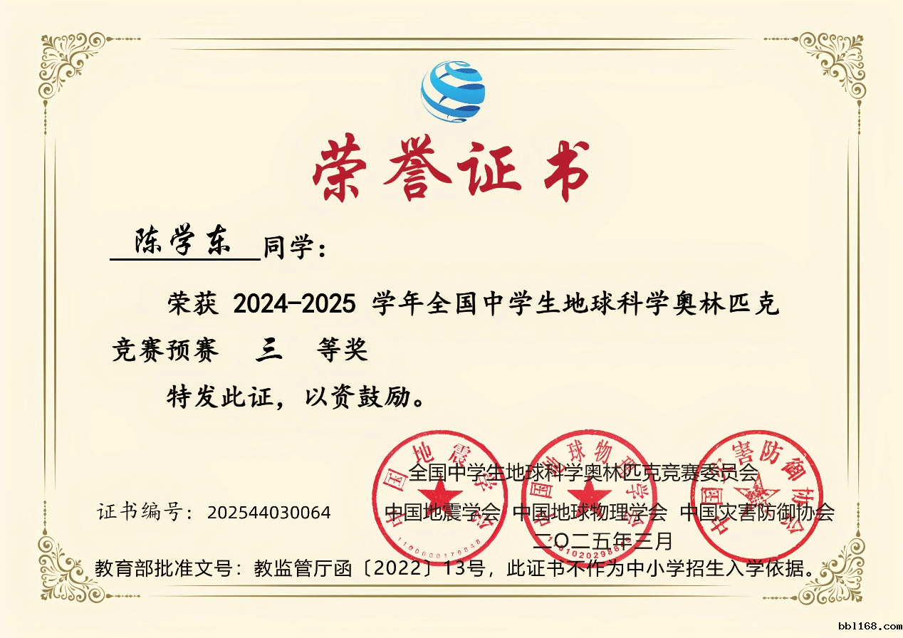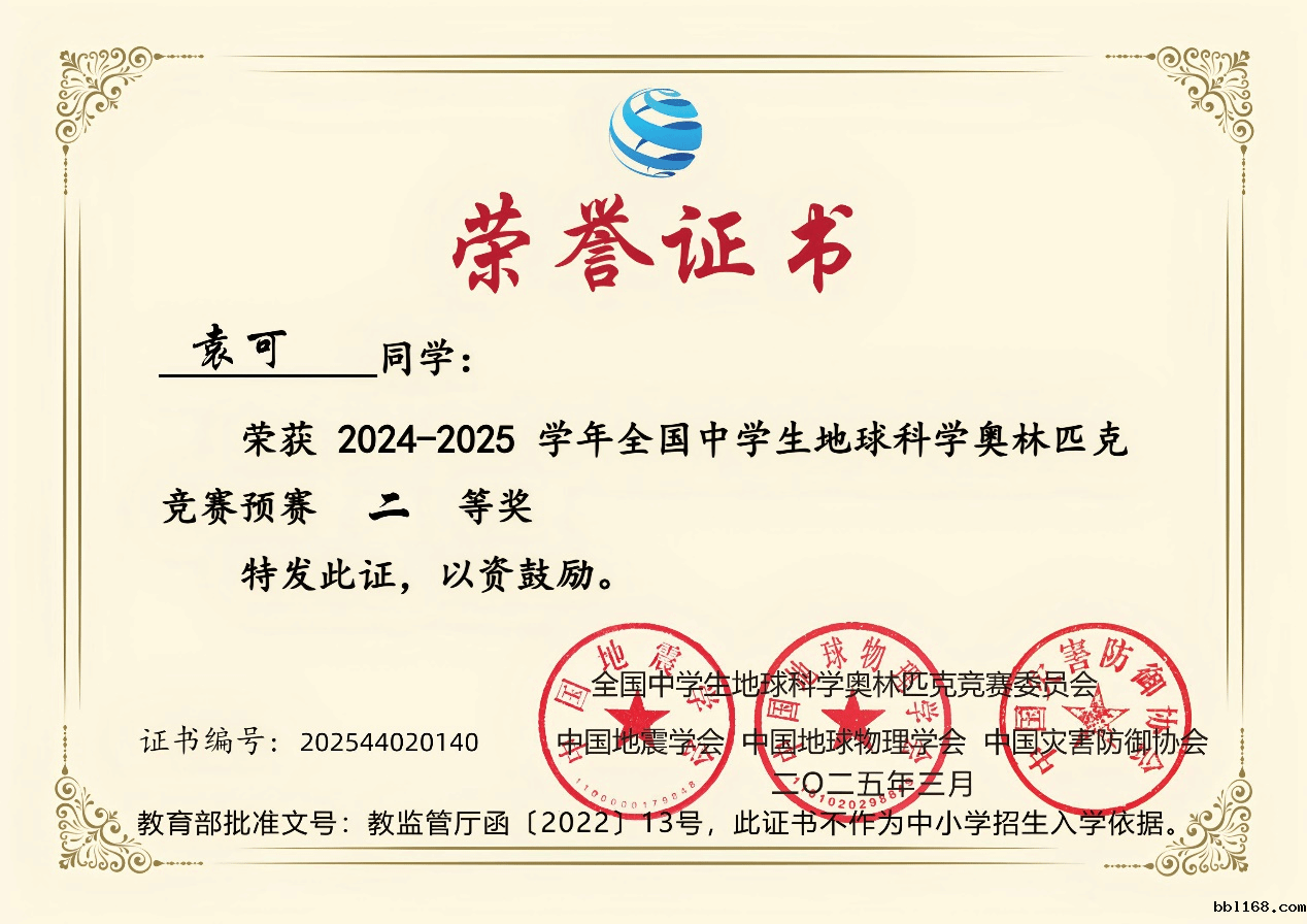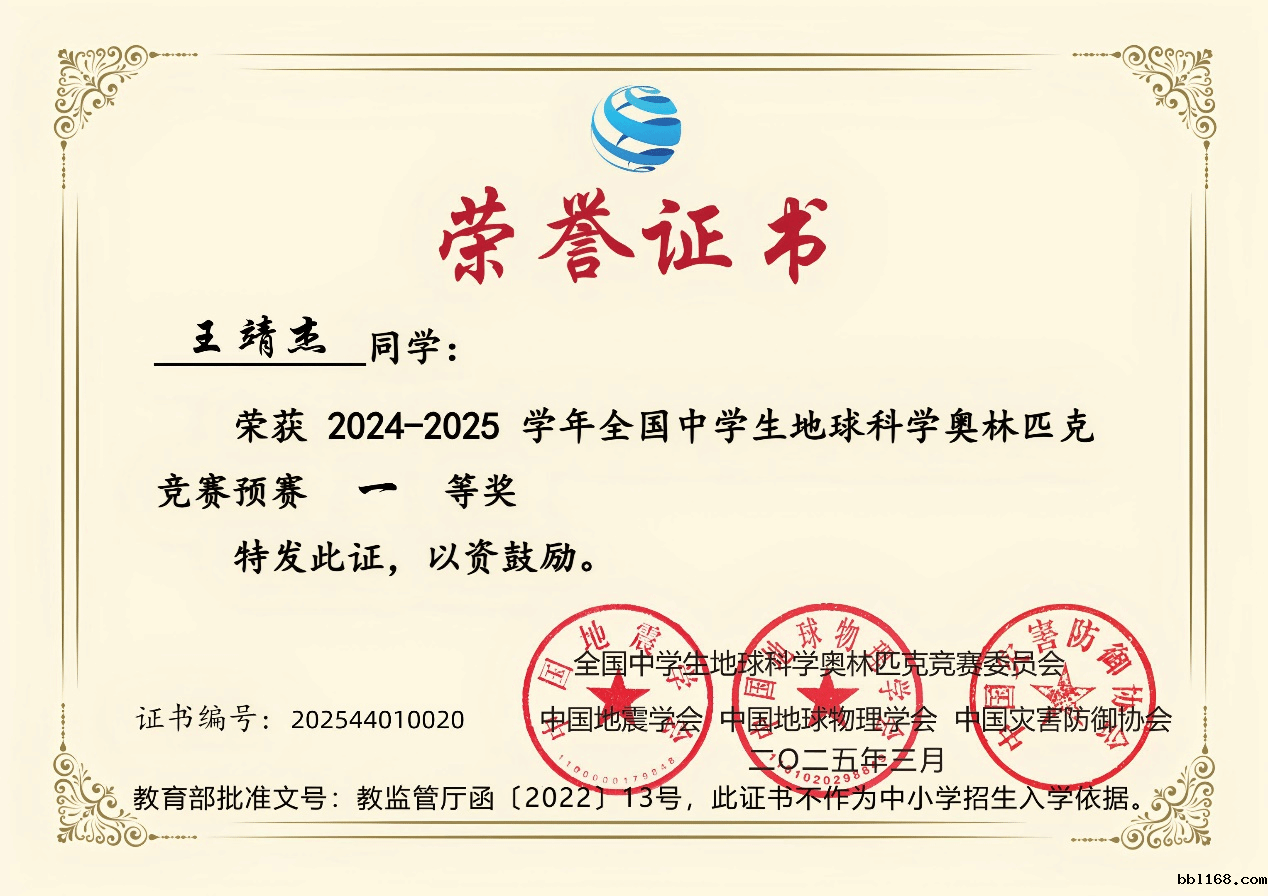 在2025年3月23日举办的第八届全国中学生地球科学奥林匹克竞赛预赛中,我校学子凭借卓越实力再创辉煌,载誉凯旋!
